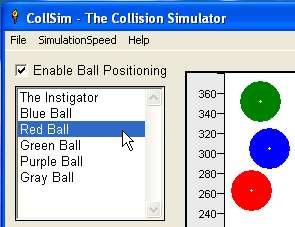 To position a ball in the arena, first set the CheckBox labeled "Enable Ball Positioning". Then in the ListBox, click the name of the ball that you wish to move. Then, move your mouse pointer to the arena. The ball selected will move with your mouse pointer around the arena. Left click with your mouse to set the ball position.