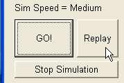 Below the ComboBoxes are three buttons. The "Go!" button begins the simulation process. The "Replay" button will allow the user to replay the most recent simulation. Since the ball positions have already been calculated, the Replay button starts the animation phase instantly. Replay is only effective if no other controls have changed state since the last simulation.