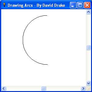 As you examine the code below, note that the Windows API arc function has nine arguements. These arguements are identified in the comments at the end of the routine.