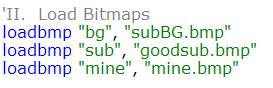 II. Load Bitmaps - we use the loadbmp command to load all of the bitmaps we will be using in our game.