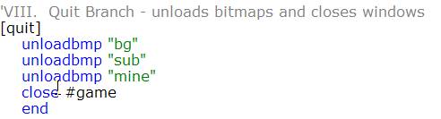 'VIII. Quit Branch - unloads bitmaps and closes windows