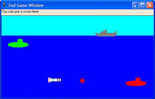 Now for the games we will be making, yes I said games, as in two. There are so many possibilities that I've had a hard time deciding on a single game to make in these articles and also I wanted to try and appeal to as many people as possible. The games will be of the arcade type. We will be working on both games simultaneously, as they both will serve to demonstrate the same principles but in different ways (hopefully). The first game will be a shooting gallery were you get points for shooting different targets such as ducks, cans, bottles, balloons and others. The second will be a submarine command game where you are the sub, trying to blow up the ships on the surface and enemy subs in the deep while avoiding their attempts to blow you up. We will start out slowly, at the end of this first lesson we will only have our backgrounds up and the sprites that we are using sitting statically on the screen. But after that the possibilities will be endless.