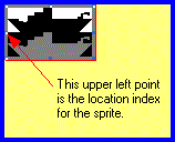 The point indicated in Figure 2 is the point that will be placed at the location we gave our ship with spritexy. This is the upper left corner of the unmasked sprite. So, anytime you are trying to place a sprite in a certain place on the screen keep this in mind.