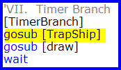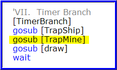 First we must add a trap branch under the TimerBranch so that the program will check the mines position each drawframe. Add the highlighted line from Figure 11 under part VII of the outline. Next under Section X of the outline add the code that you see in Figure 12.