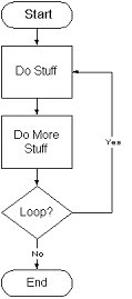 In the example above the program will only loop if A really is 5. Otherwise the program will fall through to the end of the code and terminate. Here is a graphic that demonstrates the program flow in a basic looping program that uses conditional looping.