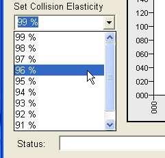 To set the Collision Elasticity, click on the ComboBox below the label that says "Set Collision Elasticity". In CollSim, the elasticity can be as high as 99% and as low as 90%.