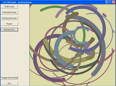 But programming geometry is too much fun, and can't be confined by time. Conforums group member Andy Amaya has recently produced another arc drawing routine, which we also feature here with his permission.