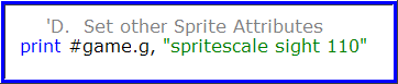 You may wonder if there is an easier way to determine at what point you need to trap a sprite. For the above I commented out the nomainwin command with an apostrophe and put two print commands as seen in Figure 6. This printed my sx and sy values to the main window.