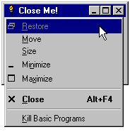 nomainwin menu #1, "&File","E&xit",[quit] button #1, "Exit",[quit],UL,10,10 Open "Close Me!" for window as #1 wait [quit] close #1 :end